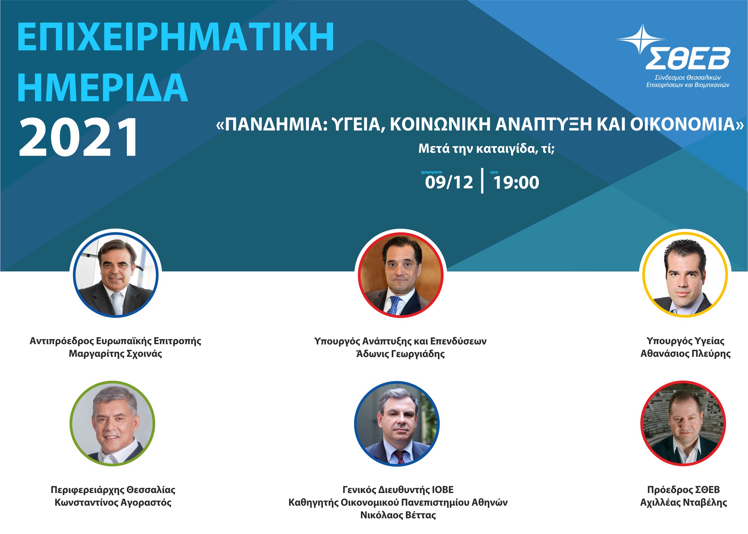 Ο Υπουργός Ανάπτυξης και Επενδύσεων κ. Άδωνις Γεωργιάδης, ο Υπουργός Υγείας κ. Θάνος Πλεύρης, ο Περιφερειάρχης Θεσσαλίας κ. Κώστας Αγοραστός, ο Γενικός Διευθυντής ΙΟΒΕ και Καθηγητής του Οικονομικού Πανεπιστημίου Αθηνών κ. Νίκος Βέττας καθώς και ο Πρόεδρος του ΣΘΕΒ κ. Αχιλλέας Νταβέλης, θα παραστούν και θα συμμετέχουν ως κύριοι ομιλητές στην επιχειρηματική ημερίδα που διοργανώνει ο ΣΘΕΒ, την Πέμπτη 9 Δεκεμβρίου και ώρα 19.00 στη Λάρισα (Ξενοδοχείο Larissa Imperial).