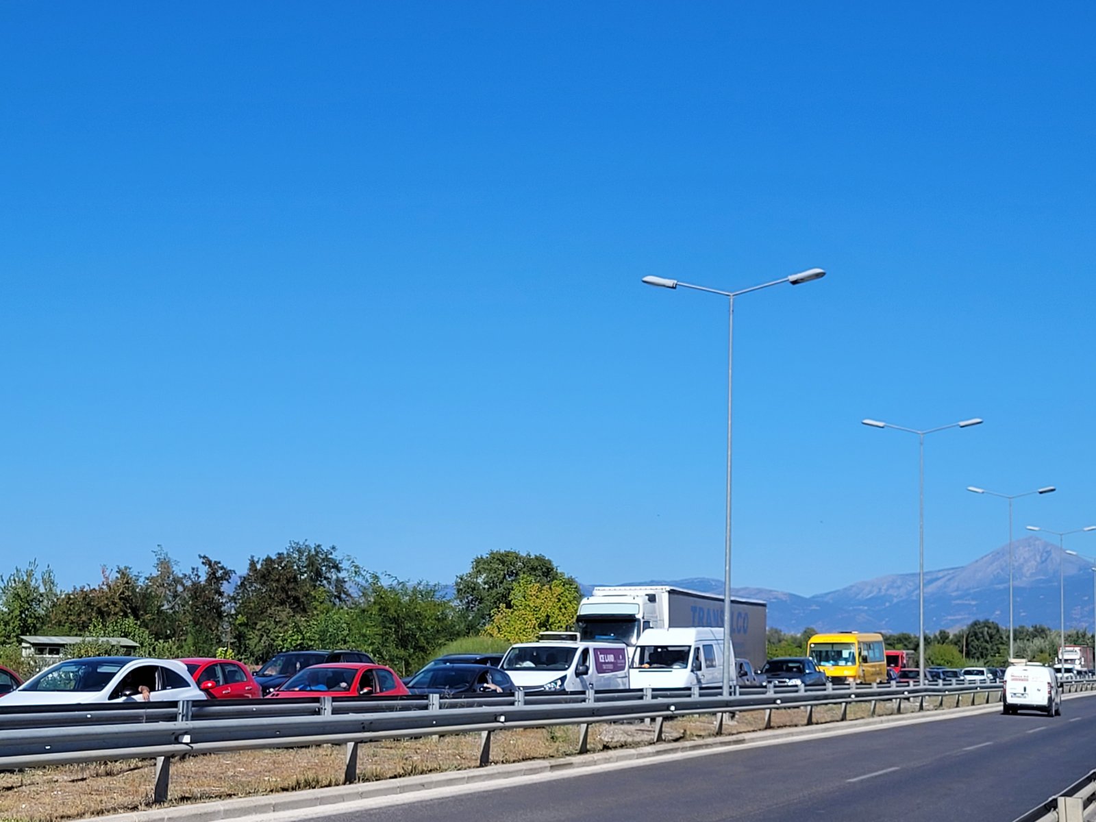 Στο μεταξύ αυτή την ώρα υπάρχει κυκλοφοριακή συμφόρηση στο σημείο λόγω του τροχαίου.