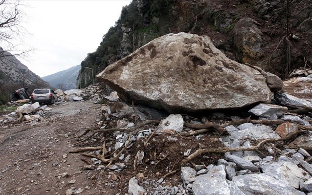 Κλειστός παραμένει ο δρόμος από τον Αγιόκαμπο προς το χωριό Σκλήθρο του δήμου Αγιάς, στη Λάρισα, μετά τις κατολισθήσεις που σημειώθηκαν λόγω της κακοκαιρίας και των έντονων βροχοπτώσεων.