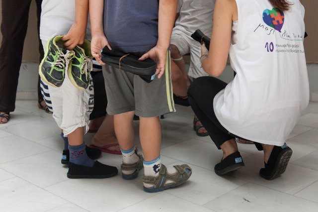 Ως επίσημος συνεργάτης της TOMS (Giving Partner) στην Ελλάδα, το Μαζί για το Παιδί, μοιράζει παπούτσια σε ιδρύματα, φορείς αλλά και σε καταυλισμούς προσφύγων. Από το 2015 έως σήμερα έχουν διατεθεί συνολικά περισσότερα από 39.000 ζευγάρια παπούτσια και μόνο φέτος υπολογίζουμε να δοθούν περίπου 28.000 επιπλέον, γεγονός το οποίο αποδεικνύει πως η αγκαλιά της Ένωσης του Μαζί για το Παιδί μεγαλώνει για να χωρέσει ακόμη περισσότερα παιδιά!