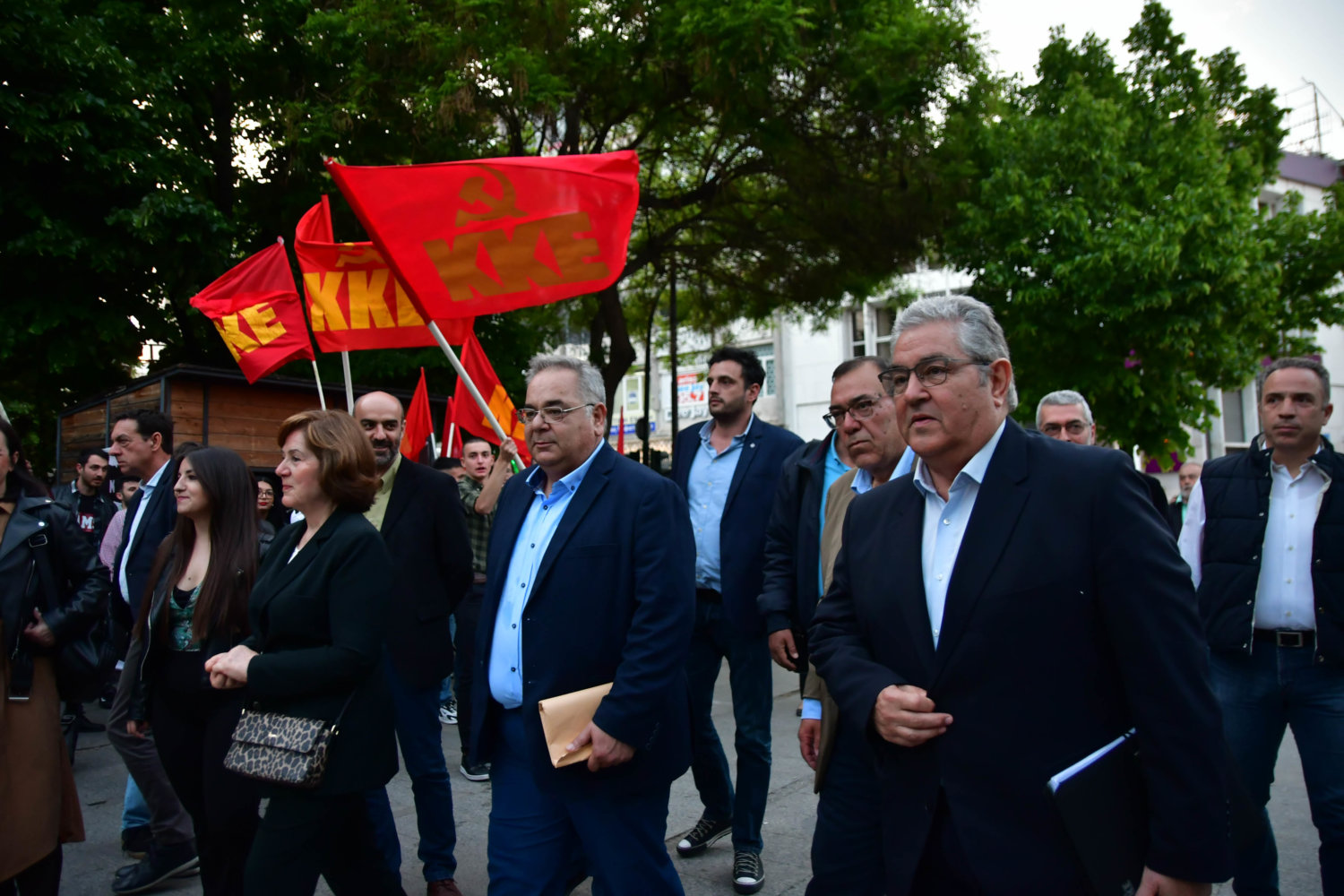 «Απόψε από δω από τη Λάρισα, από αυτή τη μεγάλη συγκέντρωση στέλνουμε μήνυμα αισιοδοξίας, ελπίδας, μήνυμα αποφασιστικής ενίσχυσης του ΚΚΕ.