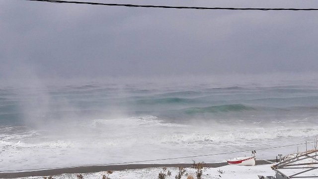 Από τη μία πλευρά το χιόνι που έφτασε ως εκεί που… σκάει το κύμα και από την άλλη, τα θεόρατα κύματα που λόγω των ανέμων δημιούργησαν «αφρώδη» καταστάσεις…