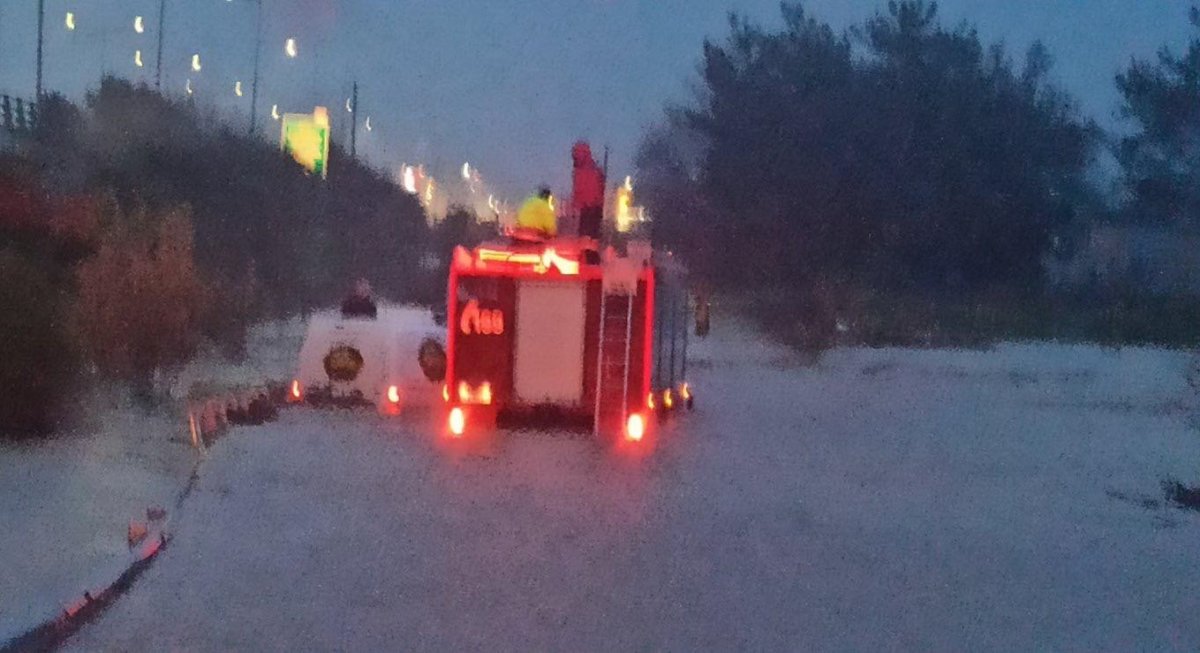 Το πρώτο περιστατικό έγινε μετά τις 7.20, το πρωί της Τρίτης, στον παράδρομο της Εθνικής Οδού – ρεύμα προς Θεσσαλονίκη, κοντά στο ύψος των διοδίων Μακρυχωρίου – όπου σε σημείο του δρόμου συγκεντρώθηκε μεγάλο όγκος νερού. Οδηγός επιχείρησε να περάσει με το όχημά του, όμως η μηχανή έσβησε, με αποτέλεσμα να καλέσει την Πυροσβεστική. Η επέμβαση των πυροσβεστών έγινε – όπως προκύπτει και από το παραπάνω φωτογραφικό στιγμιότυπο – χωρίς ο οδηγός να υποστεί το παραμικρό.