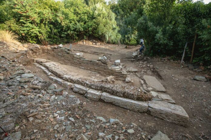 Αρχιτεκτονικά κατάλοιπα μνημειακού κτηρίου έφερε στο φως ανασκαφική έρευνα της Εφορείας Αρχαιοτήτων Λάρισας στη θέση «Σκιαθάς», σε χώρο όπου διακρινόταν μαρμάρινο κατώφλι και τμήματα τοίχων.