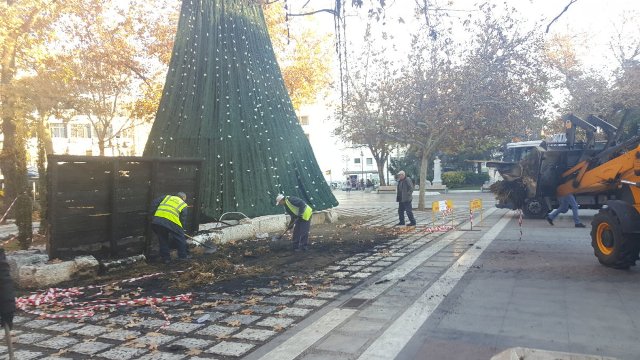 Νωρίς το πρωί της Δευτέρας συνεργεία του Δήμου Λαρισαίων βρέθηκαν στην Κεντρική Πλατεία, απ’ όπου μάζεψαν τα αποκαΐδια της φάτνης η οποία καταστράφηκε ολοσχερώς τα μεσάνυχτα της περασμένης Τετάρτης.