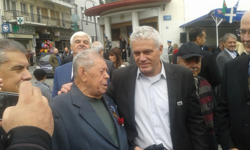 Μία ιδιαίτερη συνομιλία με τον Λαρισαίο αντιστασιακό Αθανάσιο Ριζάκη, είχε ο αναπληρωτής υπουργός Περιβάλλοντος, Γιάννης Τσιρώνης, αμέσως μετά το τέλος της σημερινής παρέλασης όπου παρέστη εκπροσωπώντας την κυβέρνηση.