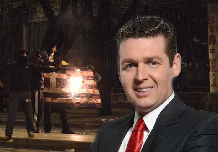 Μήνυση κατά αγνώστων, αλλά και κατά των αξιωματικών της αστυνομίας που ήταν επικεφαλής της επιχείρησης εναντίον των αντιεξουσιαστών που προκάλεσαν τα σοβαρά επεισόδια μετά τις εκδηλώσεις για το Πολυτεχνείο, για το κάψιμο της ελληνικής σημαίας, άσκησε ο Λαρισαίος δικηγόρος Στυλιανός Σούρλας.