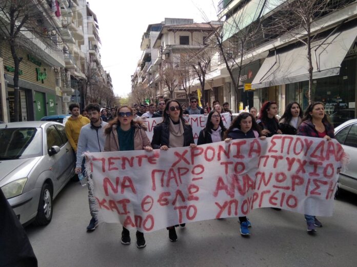 Νέα δυναμική πορεία πραγματοποιούν την Τρίτη φοιτητές του Τμήματος Γεωπονίας – Αγροτεχνολογίας και του Τμήματος Επιστήμης Ζωικής Παραγωγής του Πανεπιστημίου Θεσσαλίας στην πόλη της Λάρισας, ζητώντας να τους αποδοθούν επαγγελματικά δικαιώματα.