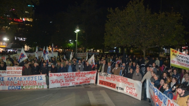 Ιδιαίτερα μαζική και μαχητική ήταν η παρουσία ανέργων, εργαζομένων, συνταξιούχων, νέων και γυναικών από ολόκληρη τη Θεσσαλία στο αποψινό συλλαλητήριο που πραγματοποιήθηκε στην Κεντρική Πλατεία της Λάρισας.