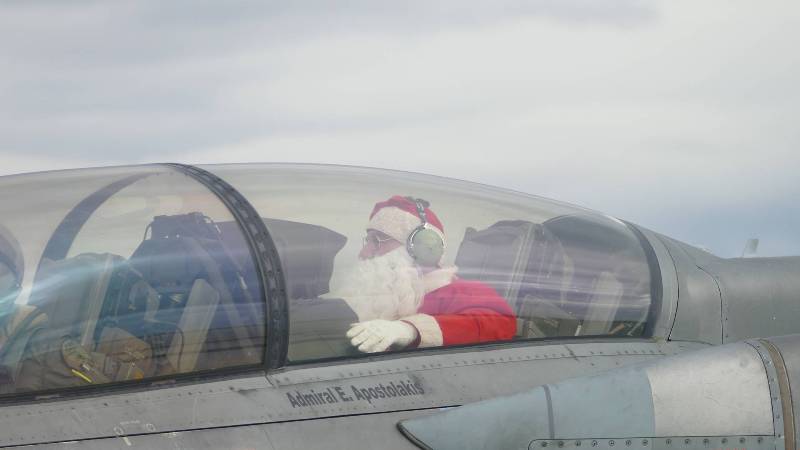 Με ένα αεροσκάφος F-16 «προσγειώθηκε» σήμερα, Πέμπτη, στην 110 Πτέρυγα Μάχης της Πολεμικής Αεροπορίας της Λάρισας ο Άγιος Βασίλης, μοιράζοντας καραμέλες σε παιδιά που βρέθηκαν στην εορταστική εκδήλωση της διοίκησης της 110 Πτέρυγας Μάχης και της αντιδημαρχίας Κοινωνικής Πολιτικής του δήμου Λαρισαίων.