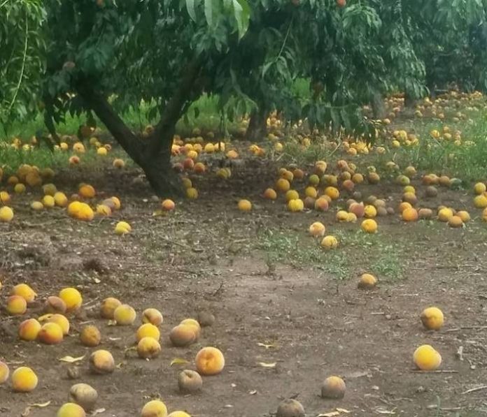 Τεράστιες αποδεικνύονται λοιπόν οι καταστροφές σε καλλιέργειες ροδάκινων σε περιοχές του Τυρνάβου και του Αμπελώνα.