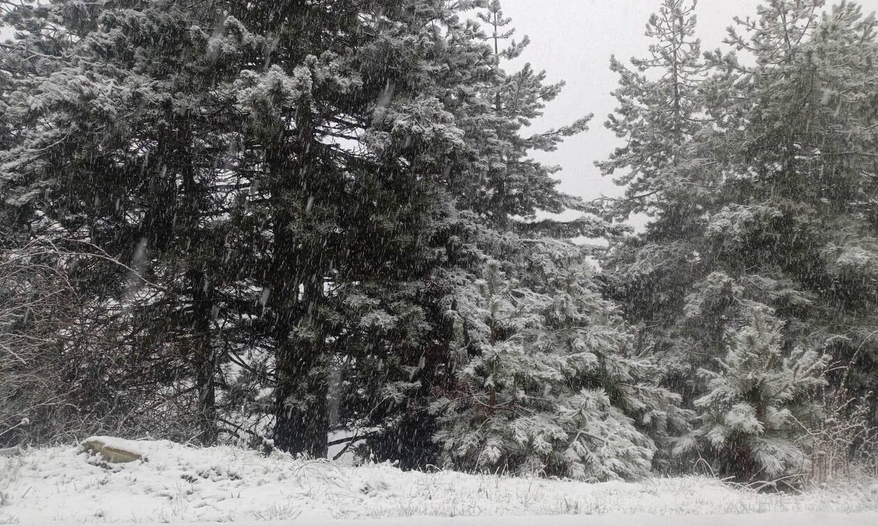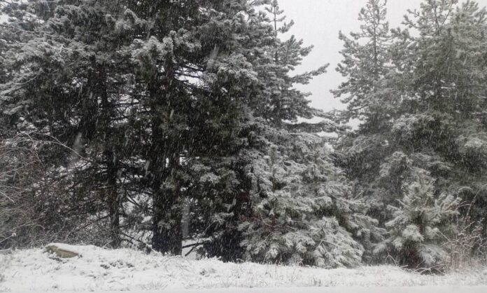 Το Λιβάδι Ελασσόνας «ντύθηκε στα λευκά» αρχές της Μεγάλης Εβδομάδας, απ’ όπου προέρχονται και τα φωτογραφικά στιγμιότυπα.