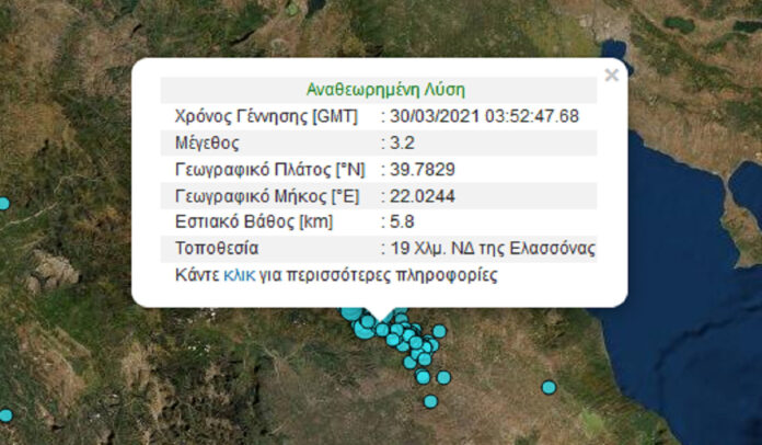 Ο πλέον ισχυρός εξ αυτών καταγράφηκε τα ξημερώματα της Τρίτης και ήταν έντασης 3,2 Ρίχτερ. Το εστιακό βάθος προσδιορίστηκε στα 5,8 χλμ, ενώ το επίκεντρο εντοπίστηκε 19 χλμ. Νοτιοδυτικά της Ελασσόνας.