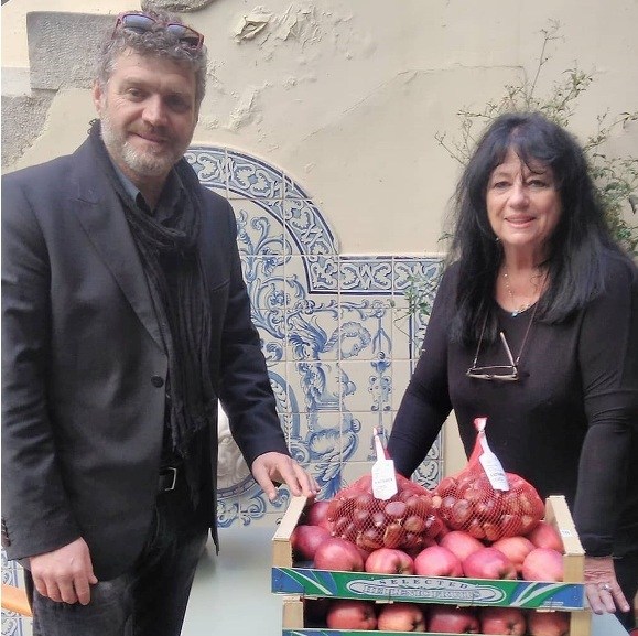 Στη φωτογραφία ο Αντώνης Γκουντάρας και η Άννα Βαγενά με μήλα Αγιάς και κάστανα Μελιβοίας, τα οποία έφερε ο Δήμαρχος Αγιάς ως δώρο για τον Πρωθυπουργό για να γνωρίσει και να εκτιμήσει μερικά από τα εκλεκτά προϊόντα της περιοχής.