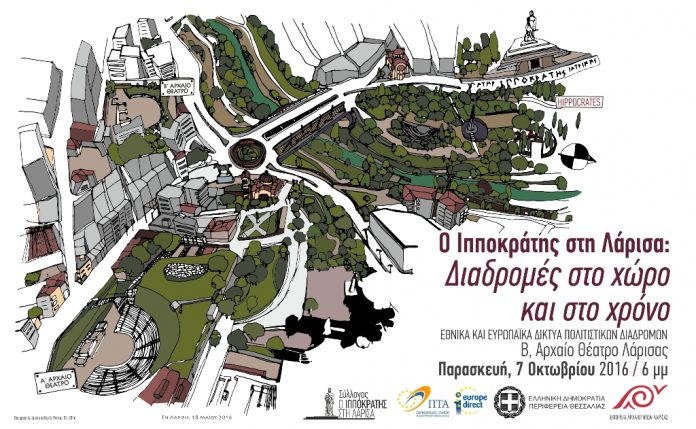 Την Παρασκευή, 7 Οκτωβρίου στο Β’ Αρχαίο Θέατρο της Λάρισας στις 6μμ θα πραγματοποιηθεί εκδήλωση με τίτλο «Ο Ιπποκράτης στη Λάρισα : Διαδρομές στο χώρο και στο χρόνο-Εθνικά και ευρωπαϊκά δίκτυα πολιτιστικών διαδρομών». Η εκδήλωση οργανώνεται από τον Σύλλογο «Ο Ιπποκράτης στη Λάρισα», την Περιφέρεια Θεσσαλίας, το Europe Direct Περιφέρειας Θεσσαλίας, το Περιφερειακό Ταμείο Ανάπτυξης Περιφέρειας Θεσσαλίας και την Εφορεία Αρχαιοτήτων του Νομού Λάρισας.