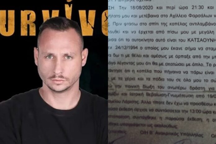 Η μήνυση που «ξέχασε» να αναφέρει κατατέθηκε εναντίον του «αγρότη» από έναν 28χρονο κάτοικο της κοινότητας Βαμβακού Φαρσάλων, τόπο διαμονής του διαγωνιζόμενου στο ριάλιτι «Survivor», Γιώργου Κατσαούνη, και αφορά περιστατικό που συνέβη τον Αύγουστο του 2020.
