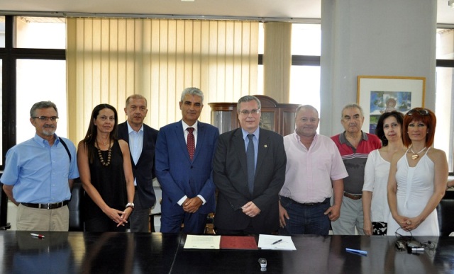 Το σύμφωνο συνεργασίας υπέγραψαν ο Πρύτανης του Πανεπιστημίου, καθηγητής Αχιλλέας Ζαπράνης και ο Πρόεδρος του Επιμελητηρίου Λάρισας, Δημήτριος Αδάμ, με την παρουσία του Οικονομικού Επόπτη και μέλους του ΔΣ του Επιμελητηρίου, Δημήτρη Οικονόμου, της Διευθύντριας Κατερίνας Τσολάκη, της Γραμματέως, Βιβής Ιατροπούλου, του Διευθυντή Οικονομικών, Νίκου Τσούγκου, του Ειδικού Συμβούλου, Γρηγόρη Παπαχαραλάμπους, του αφ. καθηγητή και Διευθυντή Σπουδών της Εταιρίας Διαχείρισης και Αξιοποίησης του Πανεπιστημίου Μακεδονίας, Γιάννη Λαζαρίδη, καθώς και της αναπληρώτριας καθηγήτριας, Ελένης Γαβρά.