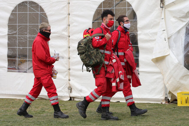 Ο Ελληνικός Ερυθρός Σταυρός ήταν λες και βρισκόταν παντού. Όπου χρειαζόταν βοήθεια έβλεπες τα μέλη του. Η Εθελοντική Ομάδα Διάσωσης και Υγειονομικών Αποστολών είχε στήσει τη σκηνή της από πολύ νωρίς και συνεισέφερε όπως μπορούσε.