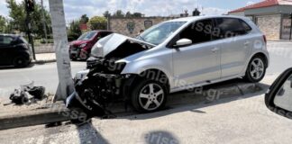 Τρελή πορεία για αυτοκίνητο στη Λάρισα – Προσέκρουσε πάνω σε κολόνα