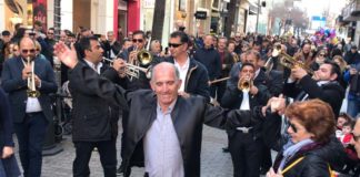 Γλέντι στους πεζόδρομους της Λάρισας με χάλκινα (video)