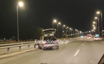 Αυτοκίνητο καρφώθηκε στο στηθαίο στον δρόμο Λάρισας – Τρικάλων