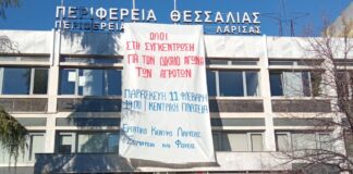 Γιγαντοπανό στην Περιφέρεια Θεσσαλίας για την αυριανή συγκέντρωση των αγροτών