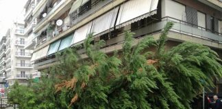 Δέντρο έπεσε πάνω σε αυτοκίνητα στη Λάρισα