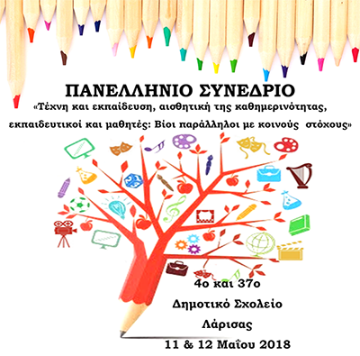 Η Περιφερειακή Διεύθυνση Πρωτοβάθμιας και Δευτεροβάθμιας Εκπαίδευσης Θεσσαλίας σε συνεργασία με το Πολιτιστικό Κέντρο Εκπαιδευτικών ν. Λάρισας, διοργανώνουν Πανελλήνιο Εκπαιδευτικό Συνέδριο με τίτλο: «Τέχνη και εκπαίδευση, αισθητική της καθημερινότητας, εκπαιδευτικοί και μαθητές: Βίοι παράλληλοι με κοινούς στόχους», που θα γίνει στις 11 & 12 Μαΐου 2018 σε χώρους του 4ου & 37ου Δημοτικού Σχολείου Λάρισας (Κουμουνδούρου 17 Λάρισα).