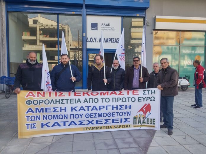 Πανθεσσαλική σύσκεψη διοργανώνει η ΠΑΣΕΒΕ αύριο Πέμπτη 12 Απριλίου και ώρα 7.00 μ.μ. στο Επιμελητήριο Λάρισας με στόχο τον συντονισμό της δράσης από σωματεία αυτοαπασχολούμενων, βιοτεχνών και εμπόρων κατά των κατασχέσεων και των πλειστηριασμών.