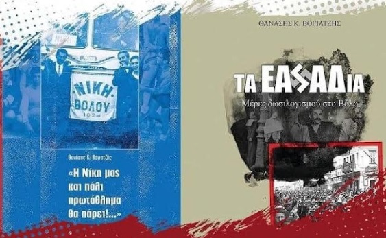 Τα δύο βιβλία του “ΕΑΣΑΔΙΑ- Μέρες Δωσιλογισμού στο Βόλο” και “η Νίκη μας και πάλι, πρωτάθλημα θα πάρει” των εκδόσεων Σύγχρονη Εποχή, παρουσιάζει ο Θανάσης Κ. Βογιατζής δημοσιογράφος – συγγραφέας, στη Λάρισα και στο Χαζηγιάννειο, την Παρασκευή 19 Νοέμβρη στις 7.30 το απόγευμα.