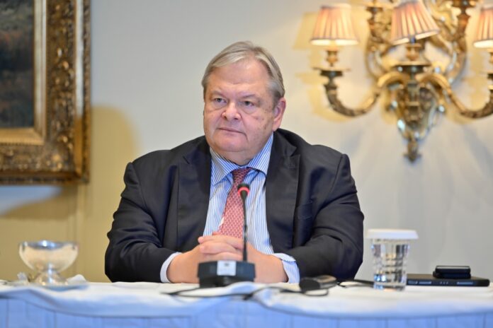 Με τον Ευάγγελο Βενιζέλο συζητούν οι δημοσιογράφοι: Ανδρέας Γιουρμετάκης, Δημήτρης Κατσανάκης, Θανάσης Σαμαράς, και η Ευαγγελία Τσικρίκα.