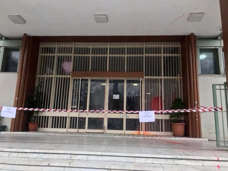 Συγκεκριμένα, άγνωστοι έφθασαν… ανενόχλητοι μέχρι την κεντρική είσοδο των δικαστηρίων από την Κεντρική πλατεία και πέταξαν μπογιές.