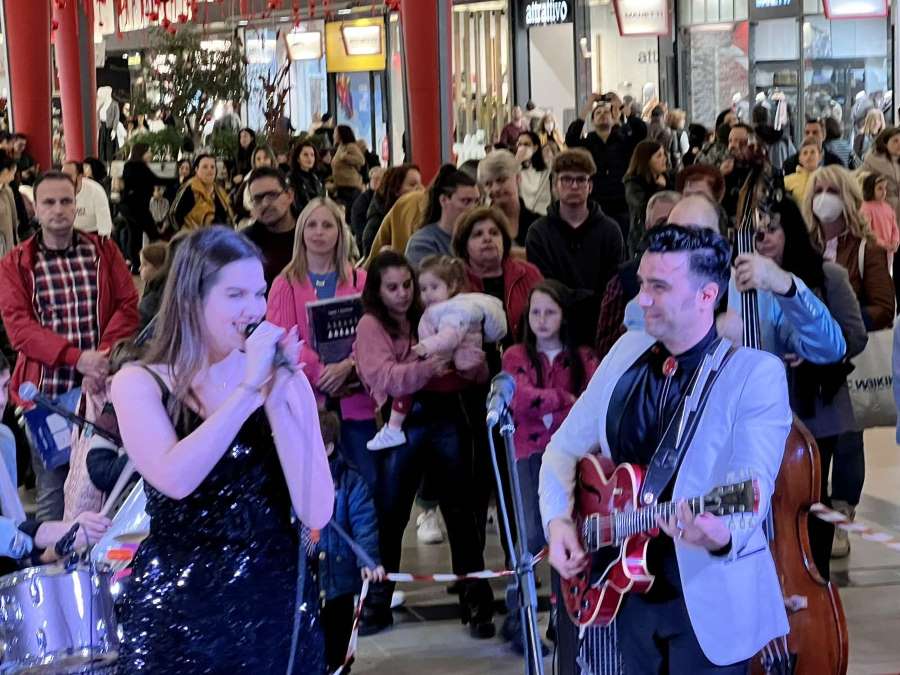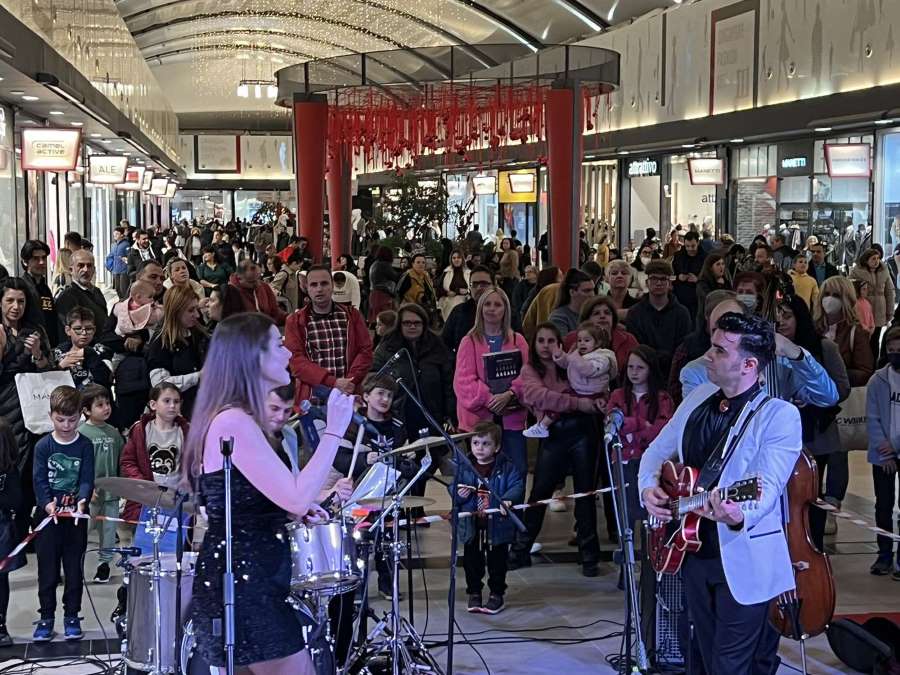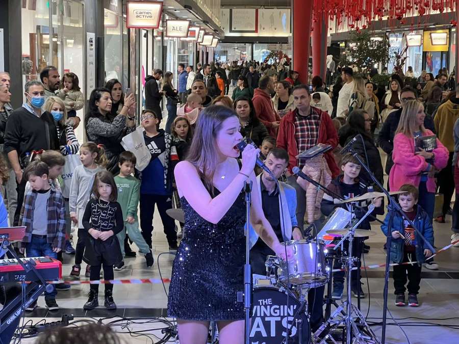 Μικροί και μεγάλοι συμμετείχαν στο πιο διασκεδαστικό χριστουγεννιάτικο πάρτι το οποίο έντυσε με την μουσική του η φανταστική μπάντα The Swingin’ Cats από την Αθήνα, με την Αλεξάνδρα Σιετή -finalist του The Voice of Greece 2021-, με την εκρηκτική φωνή και την εντυπωσιακή της παρουσία, να κλέβει τις εντυπώσεις.