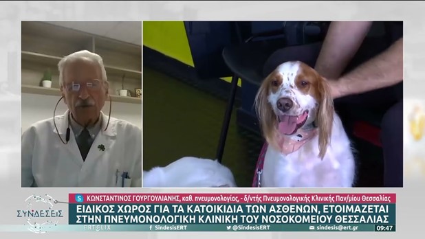 Σε απευθείας σύνδεση με τον κ. Κωνσταντίνο Γουργουλιάνη, καθηγητή πνευμονολογίας και διευθυντή της Πνευμονολογικής Κλινικής του Πανεπιστημίου Θεσσαλίας, αλλά και τον κ. Χρήστο Καραγιάννη, κτηνίατρο συμπεριφεριολόγο, παρουσιάστηκε μια πολύ ενδιαφέρουσα ιατρική πρωτοβουλία, η εκπαίδευση ζώων ώστε να αποτελέσουν μέρος της θεραπείας των ασθενών.