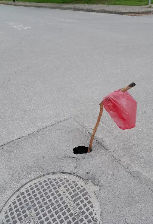 Η ρωγμή είναι σε πολυσύχναστο δρόμο (διασταύρωση στην περιοχή του περιφερειακού ιατρείου) και καλό είναι να γίνει σωστή σήμανση και φυσικά να αντιμετωπιστεί άμεσα το πρόβλημα.