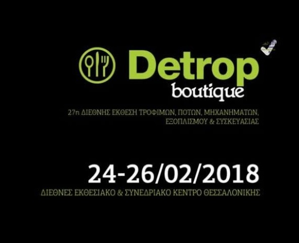 Όπως έγινε γνωστό, η Περιφέρεια Θεσσαλίας θα συμμετάσχει στην 27η Διεθνή Έκθεση τροφίμων, ποτών, μηχανημάτων, εξοπλισμού και συσκευασίας DETROP boutique 2018 που θα διεξαχθεί στη Θεσσαλονίκη στις 24-26 Φεβρουαρίου 2018.