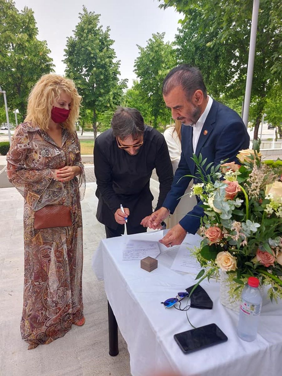 Ένας πολύ πρωτότυπος πολιτικός γάμος λόγω της τοποθεσίας όπου τελέστηκε και πιθανότατα είναι ο πρώτος γάμος που γίνεται στην Πινακοθήκη, όπως πληροφορηθήκαμε.