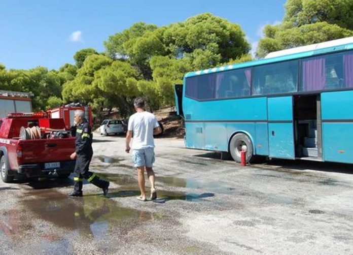 Πυρκαγιά ξέσπασε γύρω στις 3 το μεσημέρι της Δευτέρας, σε λεωφορείο που κινούνταν στην εθνική οδό Αθηνών – Θεσσαλονίκης, στο ύψος του Νέου Περιβολίου.