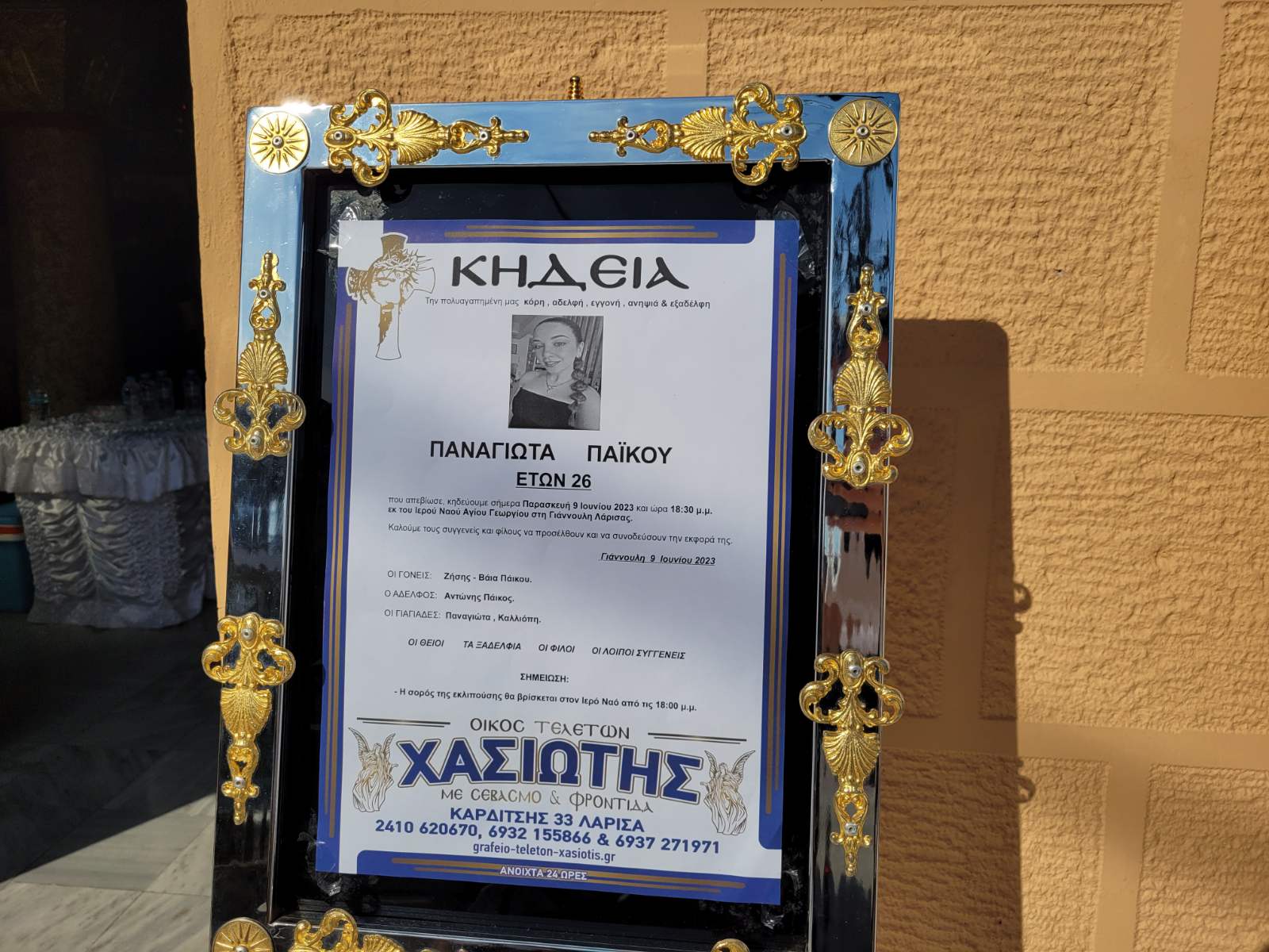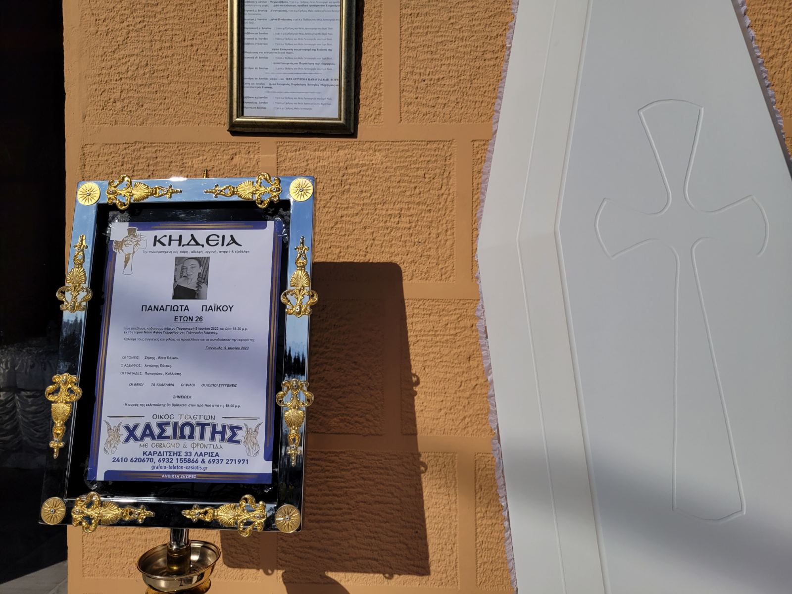 Σε βαρύ κλίμα πένθους συγγενείς και φίλοι είπαν το απόγευμα της Παρασκευής το τελευταίο αντίο στην 26χρονη Παναγιώτα Πάικου, το νήμα της ζωής της οποίας κόπηκε τόσο πρόωρα και άδικα χθες το βράδυ, σε τροχαίο δυστύχημα στη Λάρισα.