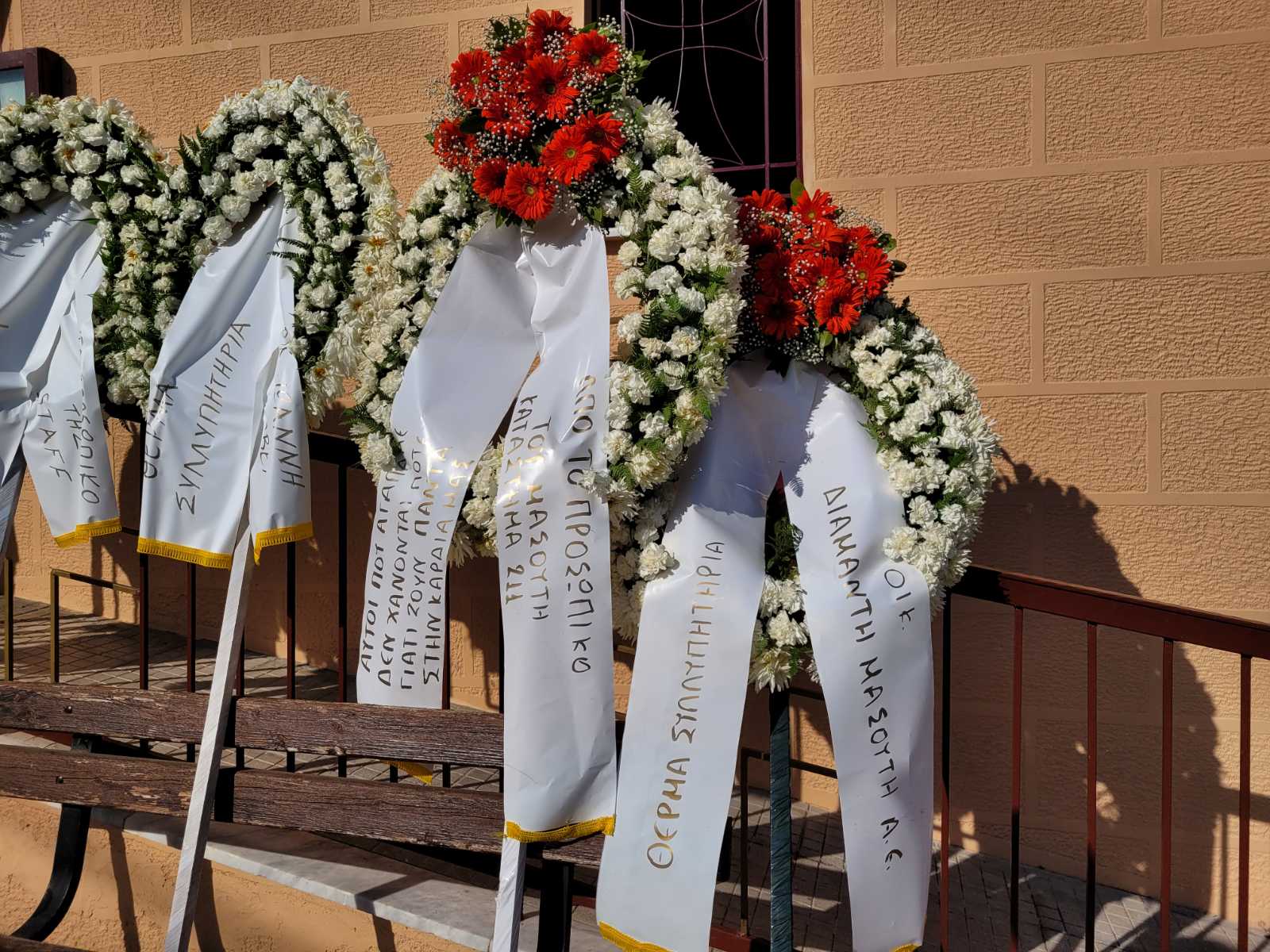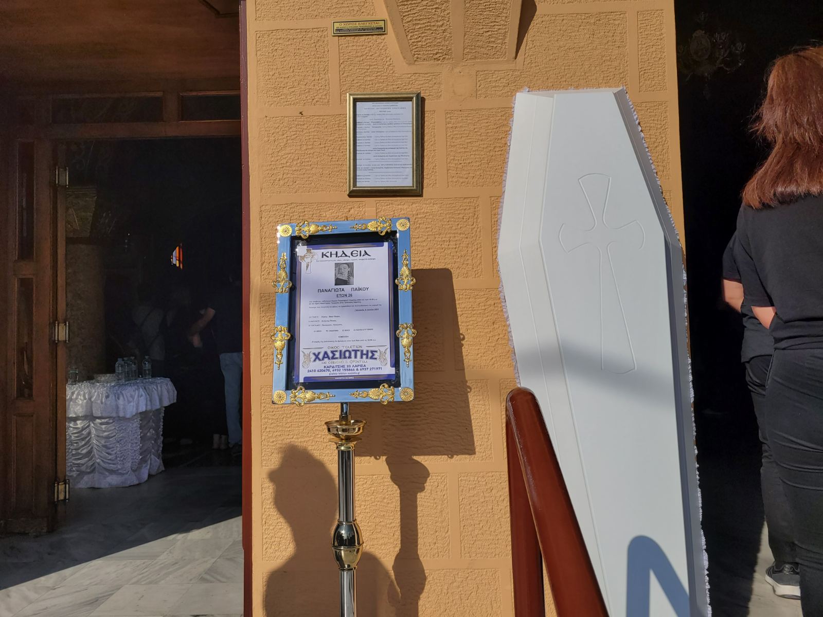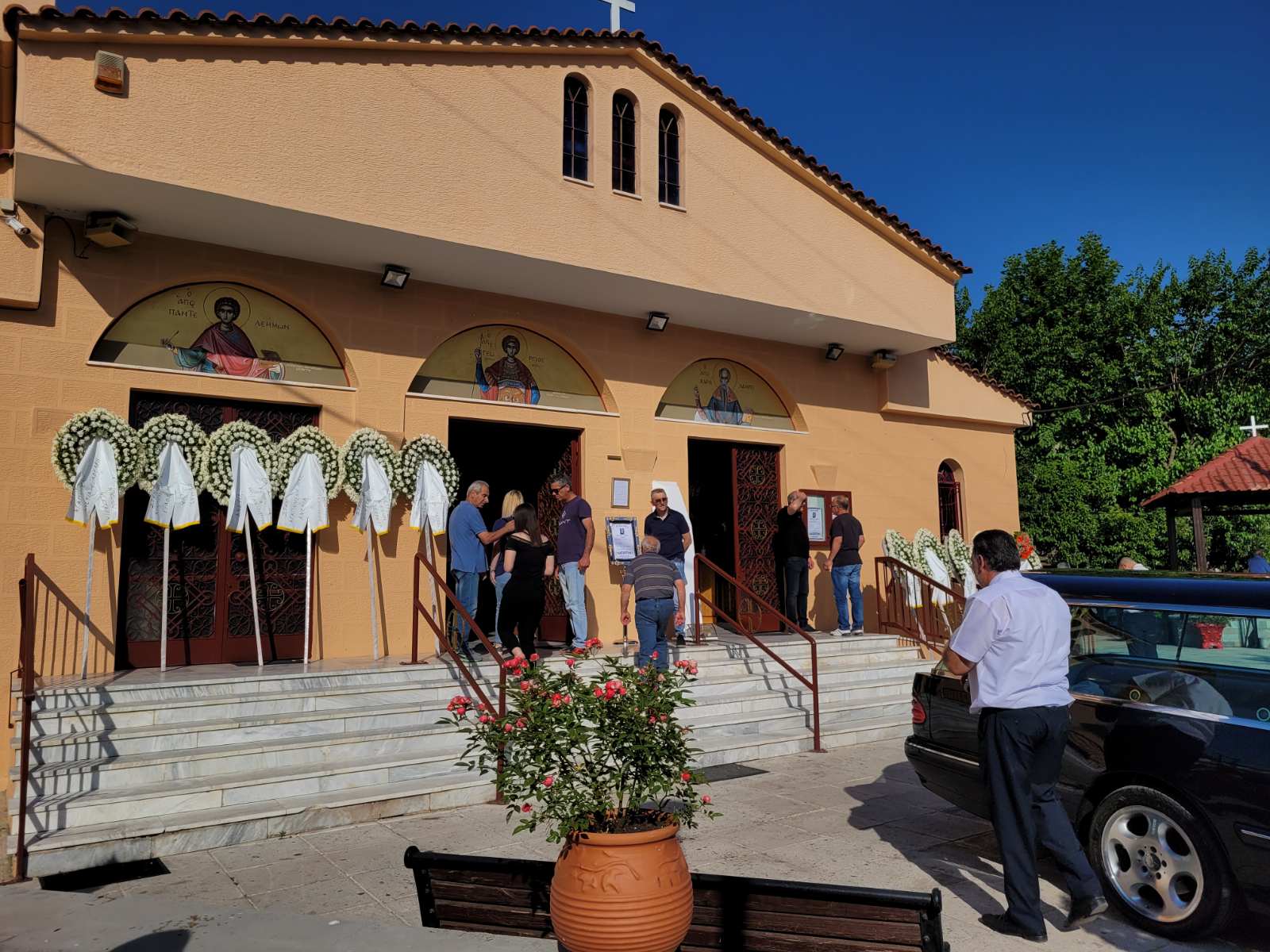 Η κηδεία της τελέστηκε από τον Ιερό Ναό Αγίου Γεωργίου στη Γιάννουλη Λάρισας.