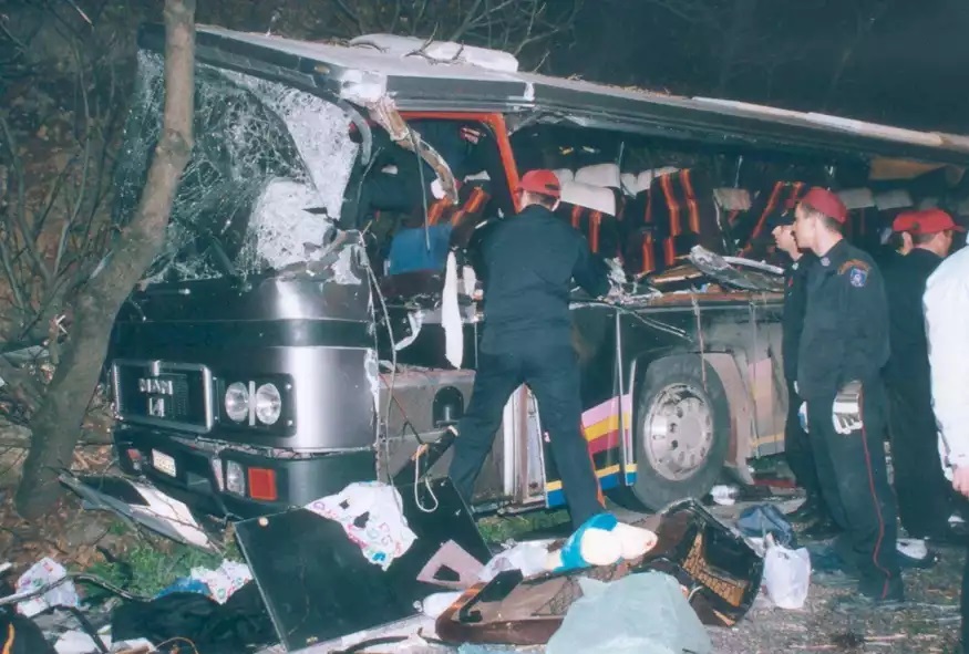 Χάνουν τη ζωή τους 21 μαθητές που επέστρεφαν στο Μακροχώρι Ημαθίας από σχολική εκδρομή στην Αθήνα. Ήταν ένα από τα πιο συγκλονιστικά τροχαία δυστυχήματα που έγιναν ποτέ στην Ελλάδα.