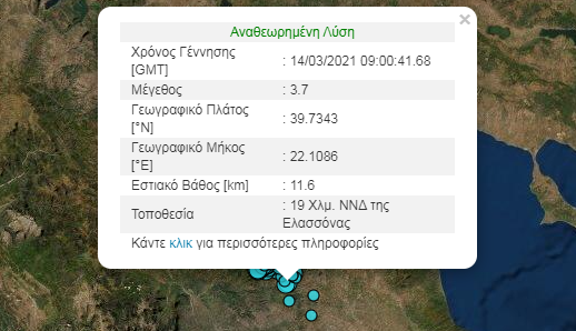 Στις 11.00 π.μ. – σύμφωνα με το Γεωδυναμικό Ινστιτούτο του Εθνικού Αστεροσκοπείου Αθηνών – καταγράφηκε δόνησε 3,7 Ρίχτερ.