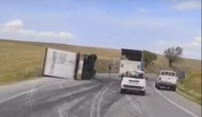 Μετά την ανατροπή το οδόστρωμα έχει καλυφθεί από καύσιμα και λάδια της νταλίκας. Οι διερχόμενοι οδηγοί οφείλουν να είναι ιδιαίτερα προσεκτικοί.