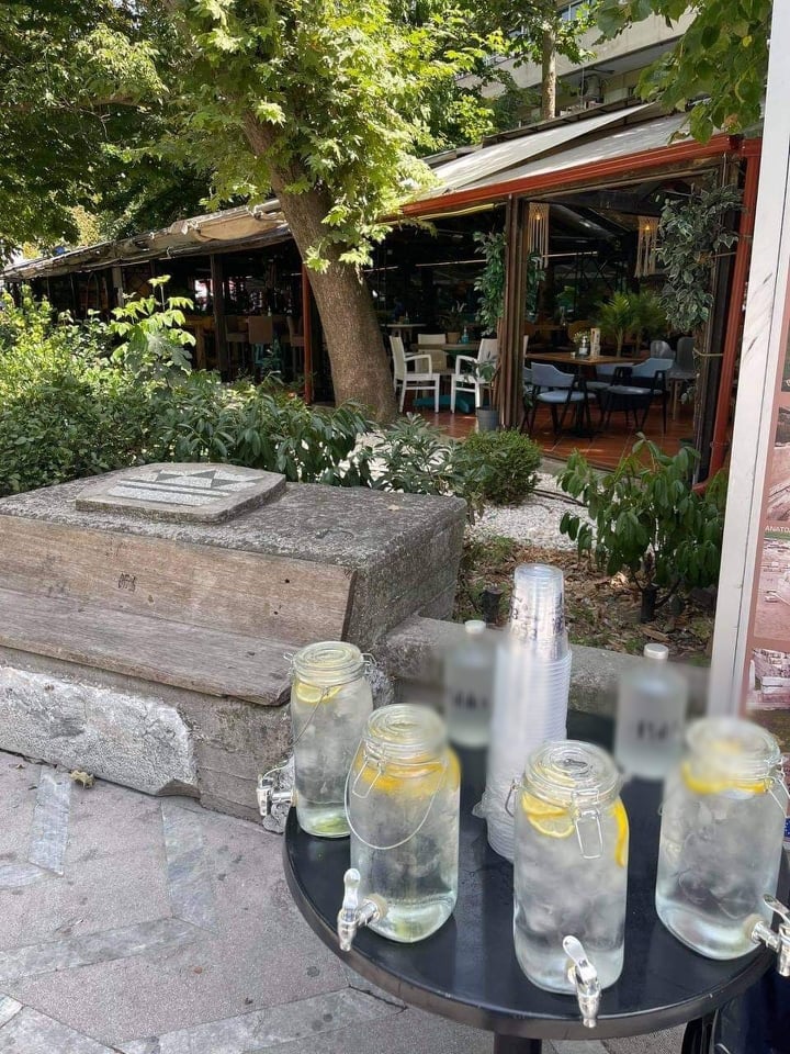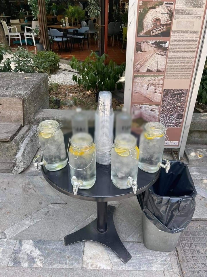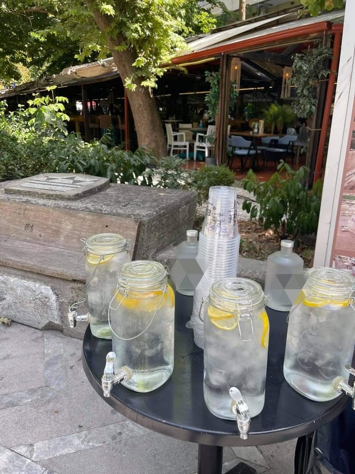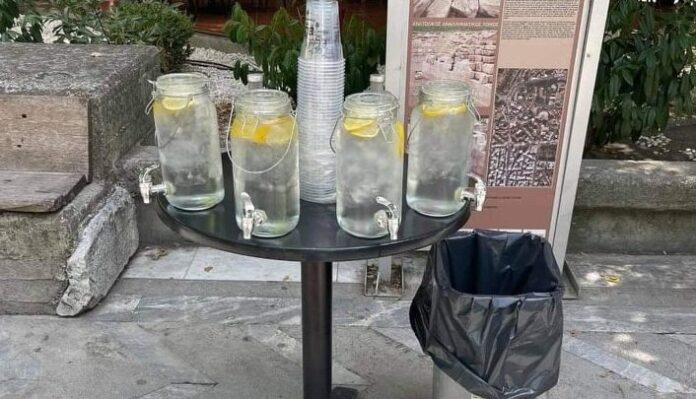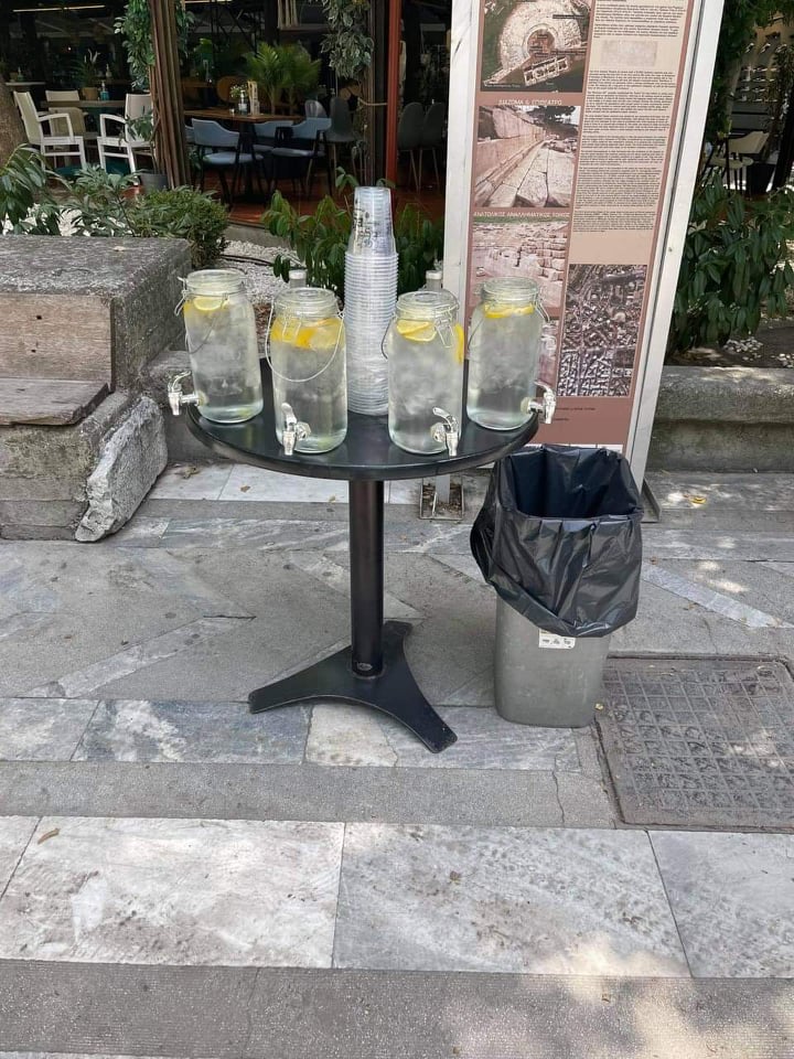 Αποφάσισαν να προσφέρουν κανάτες με παγωμένο νερό (και φέτες λεμονιού) σε πλαστικά ποτηράκια στους διψασμένους και ταλαιπωρημένους από τις υψηλές θερμοκρασίες περαστικούς.