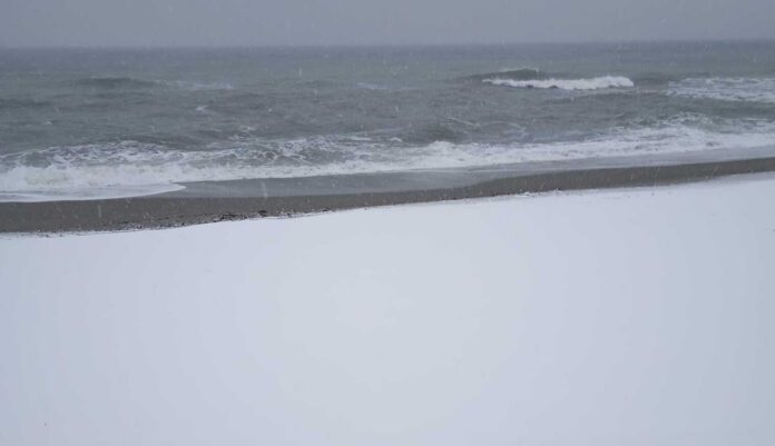 Στα λευκά ντύθηκαν τα παράλια της Λάρισας. Το ύψος του χιονιού έφτασε τα πέντε εκατοστά, ενώ αυτή την ώρα χιονίζει.