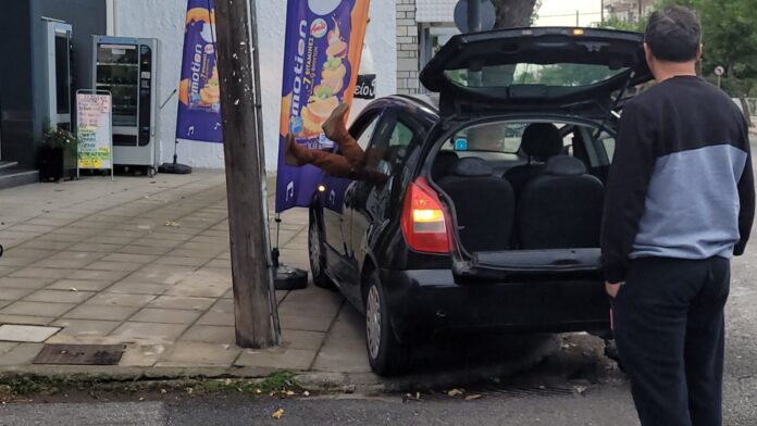 Στη συνέχεια πήρε το αυτοκίνητο και προσπαθώντας να σταθμεύσει το έριξε πάνω σε ένα δέντρο, ενώ ταυτόχρονα πηδούσε από το παράθυρο.
