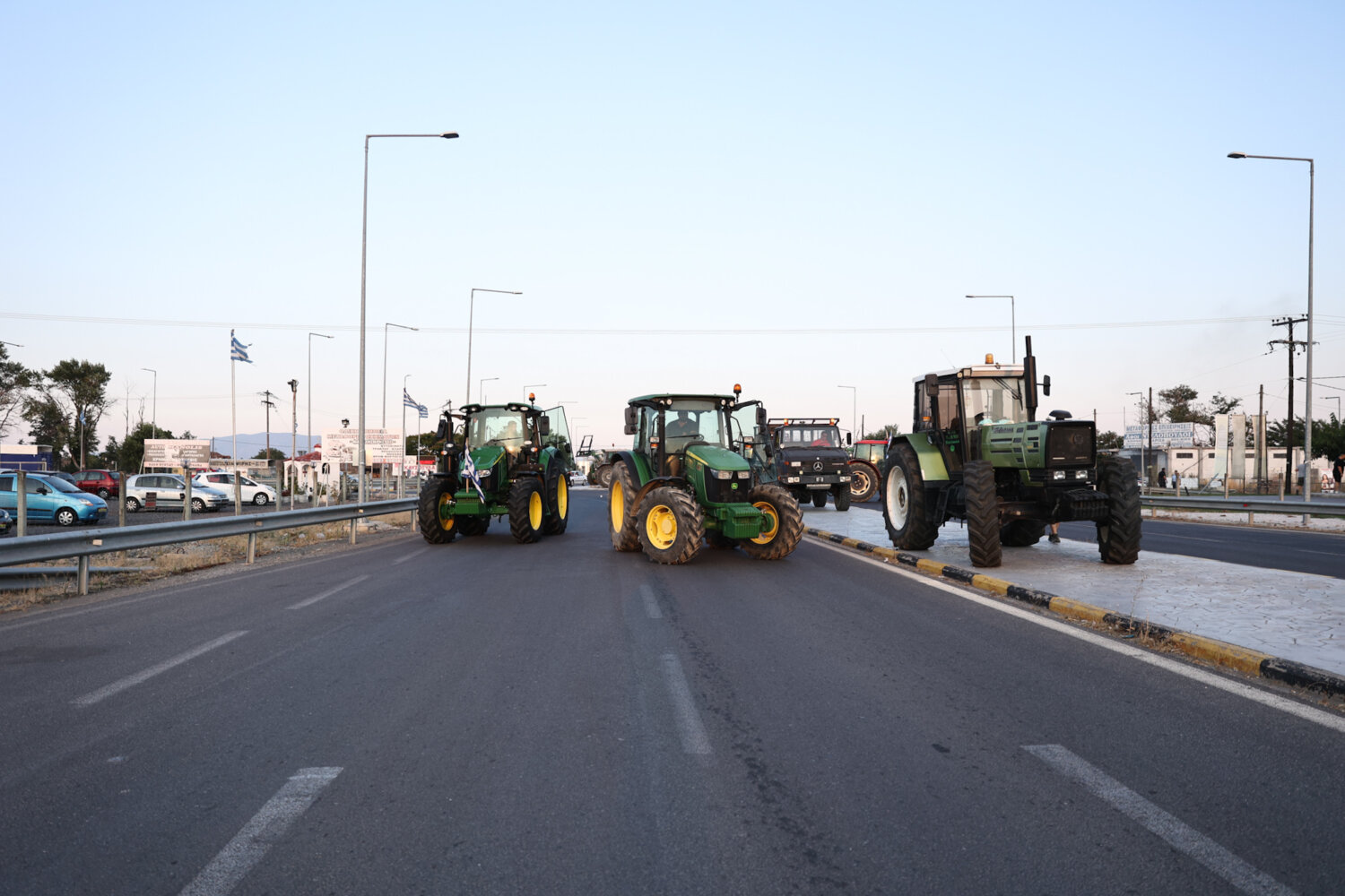 Πριν από το συλλαλητήριο στο κέντρο της Λάρισας, οι αγρότες έκλεισαν την παλιά εθνική οδό Λάρισας – Βόλου στο ύψος του Πλατυκάμπου, όπου είχαν προσυγκέντρωση.