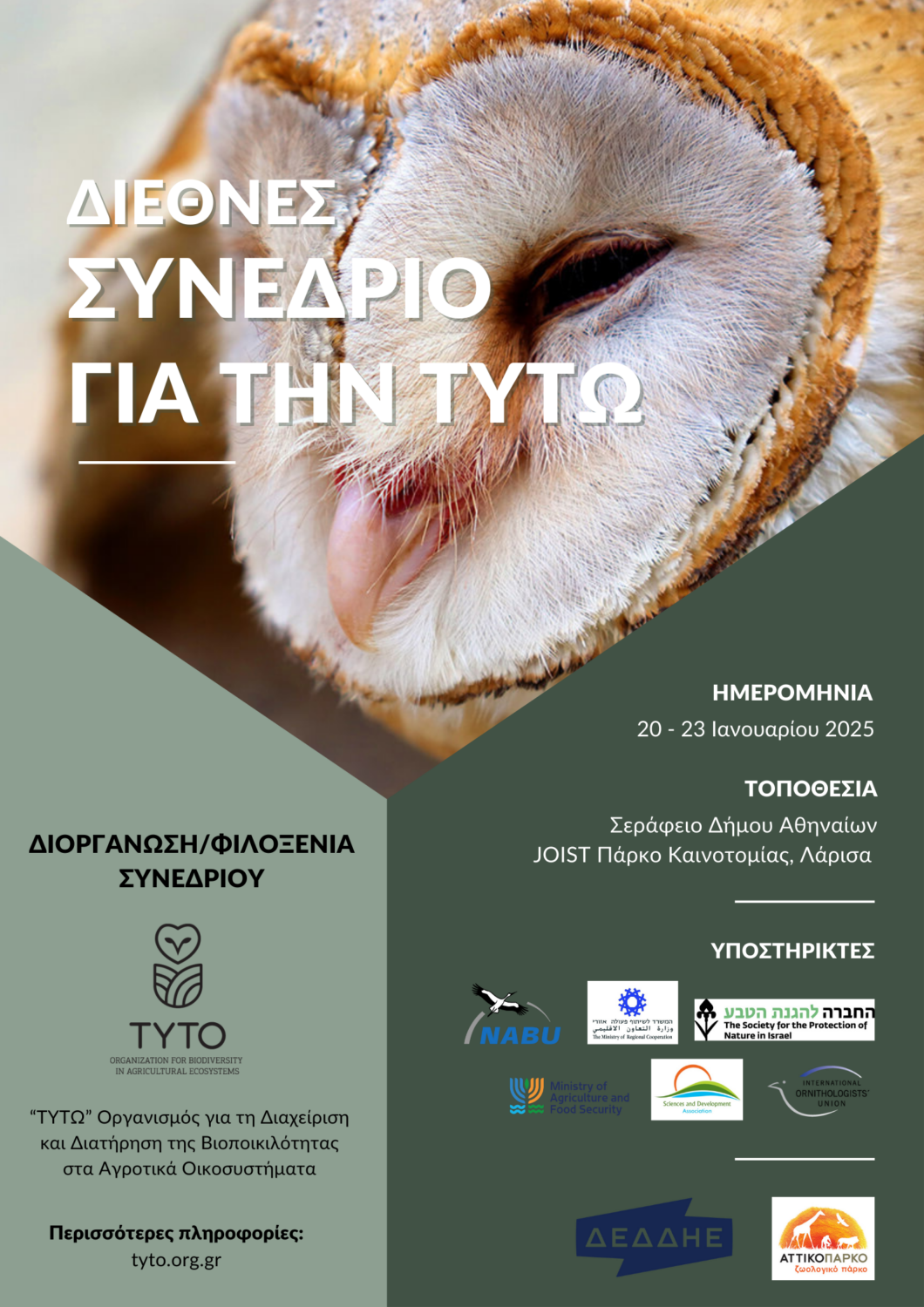 Σε μια πρωτοποριακή πρωτοβουλία που φέρνει την Ελλάδα στο επίκεντρο της παγκόσμιας περιβαλλοντικής έρευνας, η ΑΜΚΕ «ΤΥΤΩ» διοργανώνει το Διεθνές Συνέδριο για τη Διαχείριση και Προστασία της Τυτώ (Barn Owl) με τίτλο «International Barn Owl Conference 2025». Η σημαντική αυτή διοργάνωση, που θα λάβει χώρα στην Αθήνα και τη Λάρισα από τις 20 έως τις 23 Ιανουαρίου 2025, αποτελεί ορόσημο στην παγκόσμια προσπάθεια για την προώθηση βιώσιμων γεωργικών πρακτικών που στηρίζονται στη σοφία της φύσης και όχι μόνο στα χημικά, για την προστασία αυτού του εμβληματικού είδους αλλά και την προστασία της βιοποικιλότητας.