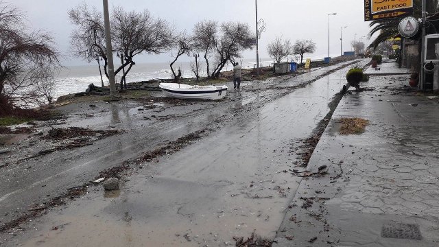 Τα κύματα που σχηματίστηκαν έφτασαν μέχρι το οδόστρωμα σε διάφορα σημεία, όπως στο ύψος της γέφυρας «Καλατράβα», του κτιρίου εργαζομένων της ΔΕΗ κλπ.