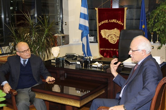 Τον πρέσβη της Ιταλίας στην Αθήνα κ. Efisio Luigi Marras, υποδέχθηκε στο Δημαρχείο της Λάρισας, ο δήμαρχος Απόστολος Καλογιάννης.